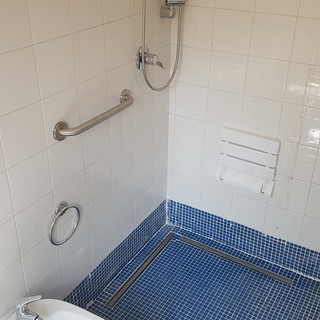 Tolto tutto il parquet si arriva al massetto e sotto cosa ci troviamo?? scarichi di piombo, e già era proprio arrivato il momento dell cambio look per il nostro bagno, si sentiva non amato dai suoi amici ma grazie a noi ora non si deve più vergognare perchè scarichi nuovi in P.V.C. doccia a pavimento con installazione di un bellissimo mosaico blu cielo e dei nuovi componenti tipo maniglione cromato e sedia confortevole non lo faranno più sentire disprezzato ma totalmente il contrario, ma non ci possiamo dimenticare del nostro affezionato cliente che nei momenti di stanca, si può mettere seduto e si può godere il suo bagno bello e nuovo mentre una cascata di acqua fredda o calda gli cade addosso....